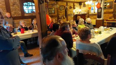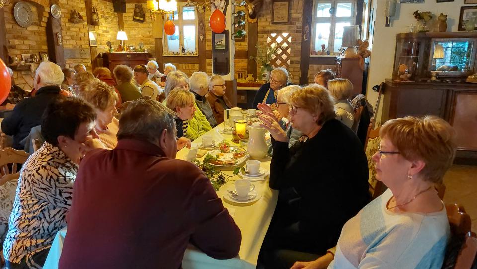 Am 26.11.2025 versammelten sich die Mitglieder und Freunde der Volkssolidarität wie immer im November in der Bürger- Scheune. Es ist ein gemütlicher Ort zum Geschichten erzählen und das vergangene Jahr Revue passieren zu lassen. Seit 4 Jahren lässt es sich unsere Geburtagsfee Claudia nicht nehmen, selbst die Torten für unsere Veranstaltung zu zaubern. So stellte sie für die 38 Frauen und Männer 2 Schokotorten und einen Frankfurter Kranz auf die Tische. Die Schnittchen vom VFBQ kamen noch dazu. Claudia begrüßte alle Anwesenden und gratulierte den Geburtstagskindern vom Oktober und November. Ernst Wolfgang Schulz wurde am 6.10. 81 Jahre, Joachim Buß 91 am 22.10., Cäsar am 2.11. 86 Jahre und Ilse Kuntze schon 91. Rosi Schluchter, Bärbel Beßler, Bärbel Jänsch und Inge Mittelstädt erhielten ihre Gratulationen bereits im Bus nach Potsdam, inklusive Geburtstagslied. |