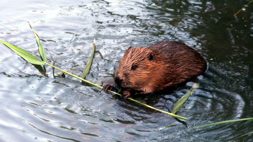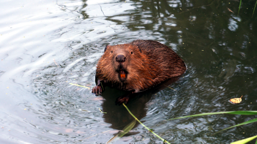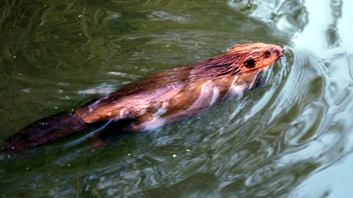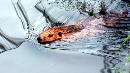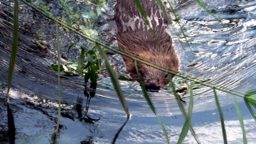 Eine Biberfamilie beim Abendspaziergang an der Oder bei Bienenwerder