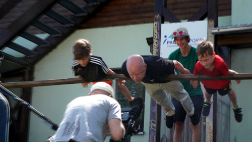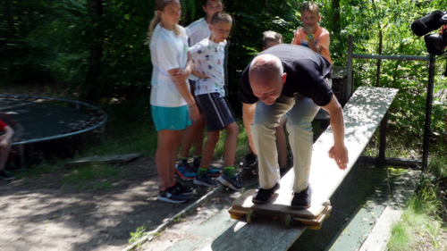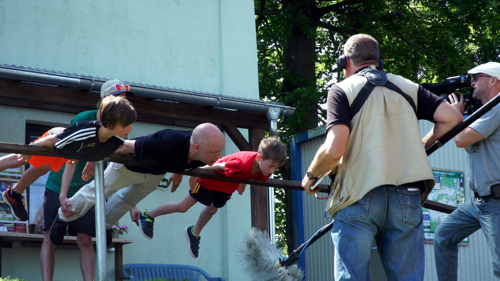 Der rbb beim Wintersportverein 1923 Bad Freienwalde e.V. produziert einen Wetterbericht während eines deutsch - polnischen Trainings auf den Schanzen der Stadt. |