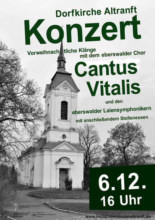 Am 6.12.2015 um 16 Uhr findet in der Dorfkirche Altranft ein Konzert mit dem Chor „Cantus Vitalis“ und dem „Eberswalde Laiensymphoniker statt.
