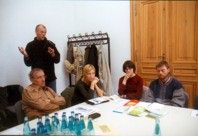 Nachdem sich alle Teilnehmer in die Listen eingetragen hatten, wurde in drei Gruppen weiter an dem Rohmaterial gearbeitet. Und alle verständigten sich, wie und wann die nächste Arbeit organisiert werden kann. Es wurden Übersetzungen verabredet und die Weiterarbeit am Internet.