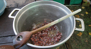 Das Wurstkochen im großen Kessel war Aufgabe der Hausmutter. Die Kontrolle, ob die Wurst gar ist, übernahm aber der verantwortliche Schlächter. Sobald dies entschieden wurde, breitete man die Würste zum Abkühlen auf eine Strohschicht aus, bevor man sie am nächsten Tag zum Räuchern aufhängte. Das übriggebliebene Blut wurde mit Mehl, Fleischresten und Bratobst zu „Schwarzauer“ zusammengekocht. Es war dies ein sehr geschätztes, besonders kräftiges Abendgericht, zudem auch immer mal ein Schnaps gereicht wurde.
