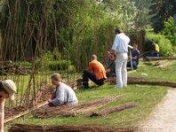 Besonderer Höhepunkt des Korbmachertages war die Restaurierung des Weideflechtzaunes um das Fischerhaus durch deutsche und polnische Jugendliche.