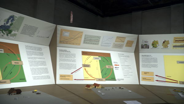Besonders angepriesen wurde während des Gottesdienstes durch Kenneth Anders der Besuch der aktuellen Ausstellungen auf dem Berg-Schmidt-Hof. Hier gab es vor 2015 3 insbesondere für die ländliche Alltagskultur wichtige Ausstellungen, das mittelbäuerliche Wohnen um 1920 im Wohnhaus, in der Feldsteinscheune die Entwicklung der Getreideernte im Oderbruch, in der Ziegelscheune schließlich eine Spielelandschaft mit rund 50 verschiedenen historischen Spielen. Auch diese sehr gut angenommene deutsch-polnische Spielelandschaft ist verschwunden und wurde auch dem polnischen Partner nicht zur Weiternutzung angeboten. Heute ziert diese Ziegelscheune eine intellektuell überladene, für Kinder gänzlich ungeeignete Übersichtsdarstellung der landwirtschaftlichen Produktionszusammenhänge in der jetzigen Zeit. (siehe Fotos) |