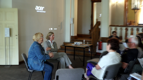 Das Gespräch zwischen Petra Hemm und Ellen Kobe über die ehemaligen Gutsherren von Altranft war interessant für die 20 Besucher. Die von Marschalls, von Hackes und von Eschenbachs waren nicht ganz unbekannt in der Geschichte Preußens und Deutschlands vor 1945. Und der alte Fritz soll sogar die Idee in Altranft gefunden haben, wie er das Oderbruch trocken legen kann...