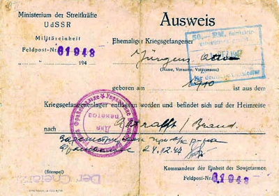 Entlassungspapiere aus der Kriegsgefangenschaft nach Altranft