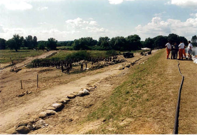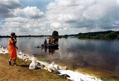 Angesichts der lebensbedrohlichen Situation für 20.000 Einwohner des Oderbruchs traf der Krisenstab in Bad Freienwalde (Oder) Vorbereitungen zur Evakuierung. Rund 8.000 Menschen im Oderbruch haben bis zum 1. August ihre Häuser verlassen. In der Nacht zum 1. August 1997 wurde mit dem Bau eines Schutzdammes bei Reitwein begonnen. Hierzu waren in den ersten Stunden ca. 80 Lkw der Straßenbauverwaltung für die Errichtung des Querdeiches im Einsatz. Der Bau des Notdeiches wurde aber vorzeitig beendet und im folgenden Jahr zurückgebaut. Im Volksmund bekam der Schutzdamm den Namen Mayerdamm in Anspielung auf den damaligen brandenburgischen Bauminister. Am 2. August bestand keine akute Deichbruchgefahr mehr, die gefährdeten Deichabschnitte blieben aber unter Kontrolle. Erst am 10. August sanken die Pegel, da das Flussbett der Oder ein geringes Gefälle aufweist und das Wasser aus den Nebenflüssen nachrückte. Die Bundeswehr hat insgesamt 30.000 Soldaten im Einsatz, die Ist-Stärke vor Ort betrug zuletzt 15.000 Soldaten mit 40 Hubschraubern, 3.000 Radfahrzeugen, davon 2.500 Lkw. |