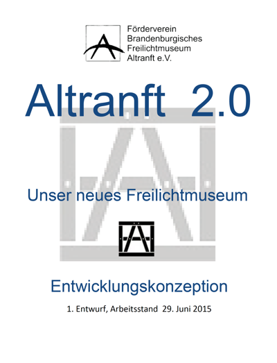 1. Entwurf der vom Förderverein des Freilichtmuseums entworfenen Entwicklungskonzeption, die ohne Diskussion von der Arbeitsgruppe zur Erarbeitung einer Entwicklungskonzeption abgelehnt wurde. Diese offizielle Arbeitsgruppe unter Leitung von Dr. Kenneth Anders weigerte sich von Anfang an, mit dem Förderverein zusammen zu arbeiten, da der Förderverein den Fortbestand des FLM als wesentliches Kriterium einer Zukunftsentwicklung favorisierte. Die vom Kreistag eingesetzte Arbeitsgruppe dagegen zielte auf eine Umgestaltung zu einer sogenannten "Werkstatt für ländliche Kultur". |