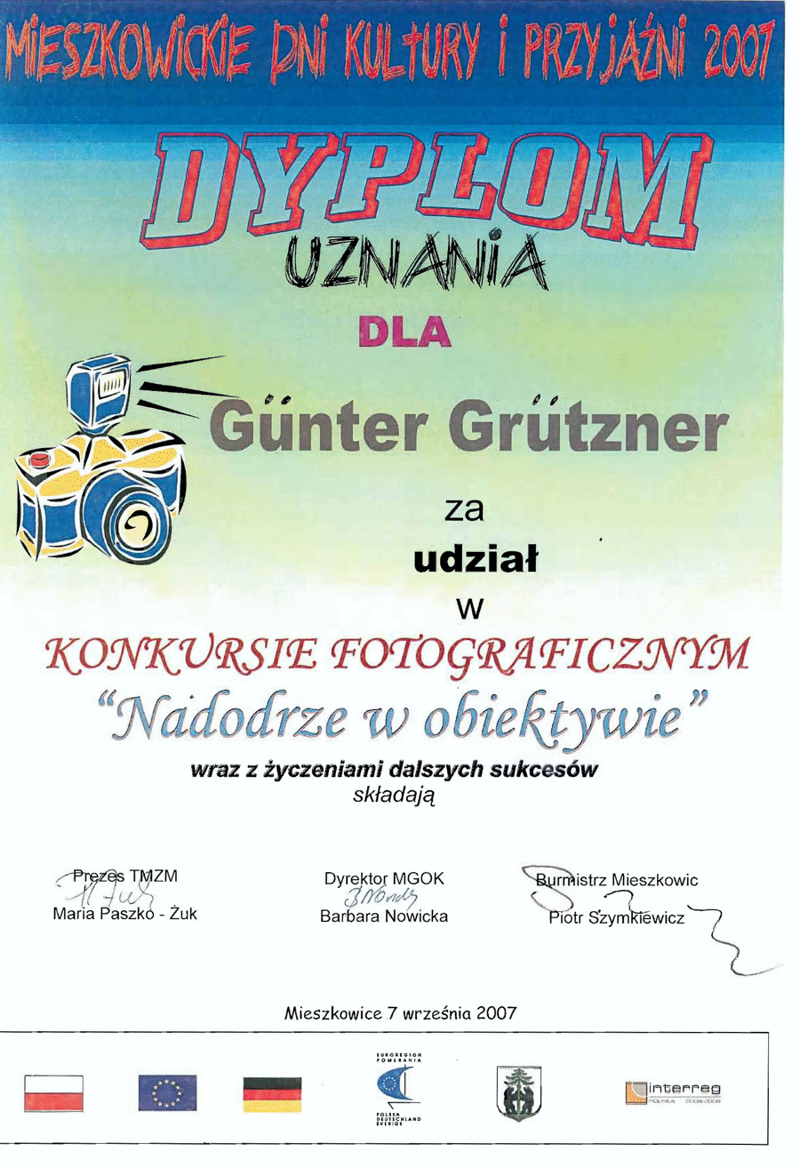 Urkunde deutsch - polnischer Fotowettbewerb in Mieskowice