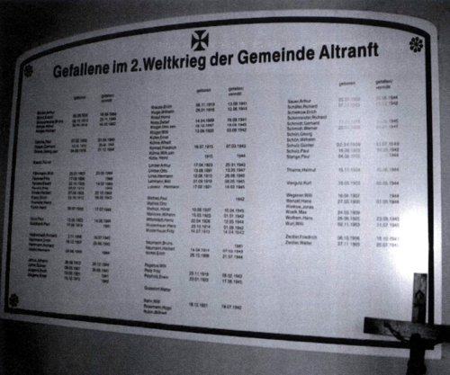 Tafel der im 2. Weltkrieg gefallenen Altranfter |