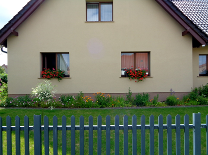 Eine fast vollständige Randbebauung mit Eigenheimen füllt