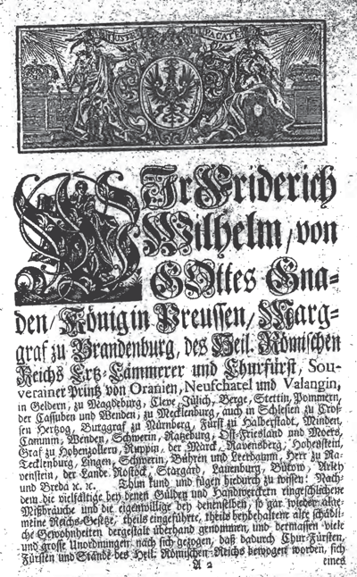 Den evangelischen Kirchen, vertreten durch die Pastoren Herrn Moritz aus Wriezen, Herrn