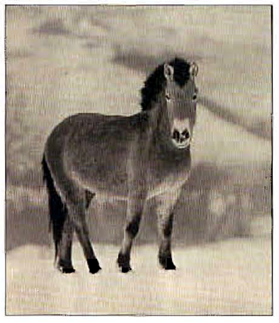 So verschieden jedes einzelne Pferd im Vergleich zu jedem anderen auch war, eines haben alle gemeinsam: das Przewalskipferd als ihren Vorfahren. Es lebte in prähistorischer Zeit in den weiten Steppen und Wäldern Eurasiens. Es war ponygroß und stämmig, hatte einen zimtgrau bis bräunlichgrau gefärbten Körper mit aufrechtstehender Halsmähne, einen schwarzem Aalstrich, schwarzen Schwanz und schwarzgestiefelte Beine. Man unterscheidet drei räumlich voneinander getrennt lebende Unterarten. Zwei der drei Unterarten werden auch als Tarpane bezeichnet. Der Steppentarpan lebte in den Steppen und Waldsteppen Südrußlands, der Waldtarpan in den Wäldern Mittel-und Osteuropas. Die dritte Unterart, das östliche Steppenwildpferd, war im mongolischen Raum verbreitet.... |