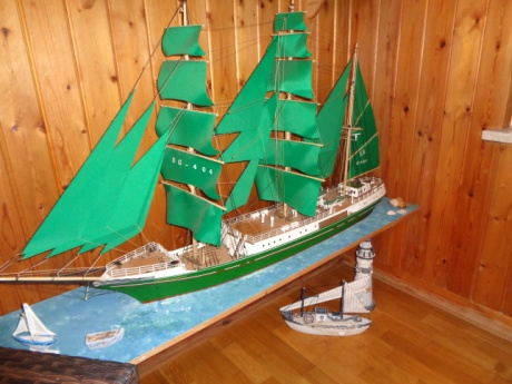In Vitrinen stehen Segler, ein Küstenwachschiff, die Staatsjacht