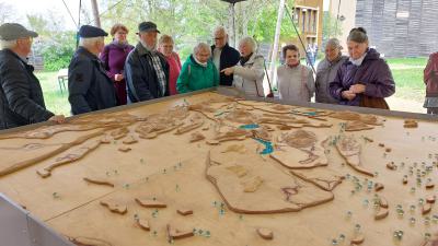 Am 24.4. wollten sich 5 Autos plus Mitfahrer incl Dieter Ganzer mit Hänger für Rollatoren bei Familie Schluchter am Anger treffen, weil die Fahrstrecke unsicher war. Bei Einigen stand die Uhr wohl noch auf Winterzeit, so dass wir Diese per Telefon mobilisieren mussten und auch Diejenigen, die bereits in der Blumberger Mühle warteten. Nach dieser holprigen Abfahrt war der Weg dorthin schon ein Erlebnis, weil uns Klaus Schluchter über Hohensaaten und Lunow nach Angermünde führte. Die Wiedersehensfreude aller 27 Frauen und Männer im Gebäude der Mühle war riesengroß und bereits drinnen gab es viel zu sehen. Das Wetter war mit 11 Grad nicht überragend, aber trocken. So machten wir uns auf den Weg, um das große Gelände, das uns vorher an der Karte gezeigt wurde, zu erkunden. Der erste große Höhepunkt war die überdachte Murmelbahn. Inge Mittelstädt kurbelte für alle Zuschauer die Murmeln aus der Versenkung. Den Künstler haben wir sofort wiedererkannt, da sein erstes Modell im Altranfter Schloss steht. Hier war das Relief um die 4 größeren Seen und besonders der Parsteiner See mit blauen Murmeln auszumachen. Die Zuläufe wurden beim Kurbeln durch grüne Murmeln sichtbar. Ein wunderschönes Spielzeug.... |