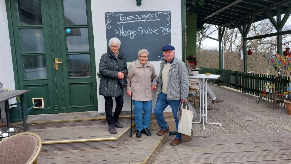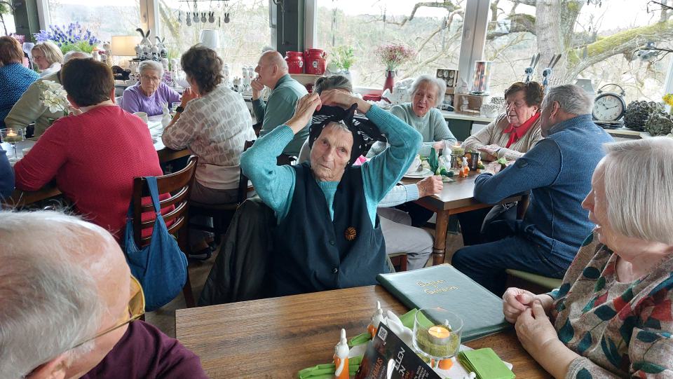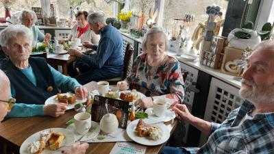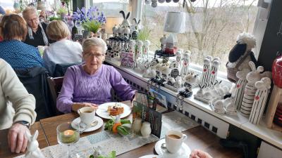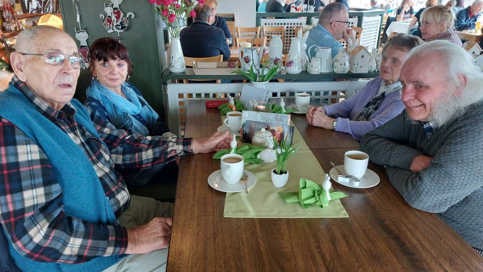 Am 26.März stand ein Ausflug zur Carlsburg auf dem Plan, zu dem sich 32 Frauen und Männer einfanden. Die Annahme, daß wir die Carlsburg mitten in der Woche für uns haben, erwies sich als Trugschluss. Obwohl wir mit Autos anreisten, bekamen wir ein Busangebot für Kaffee und Kuchen, welches sich bei diesen vielen Menschen als günstig herausstellte. Dadurch lief die Bedienung wie ein Länderspiel und wir erhielten sofort nach dem Eintreffen unser Gedeck. Die Lautstärke war natürlich entsprechend, weil alle erzählen wollten. Zum Glück gab es auch genug zu sehen. Der Blick vom Berg in die herrlichen Weiten der noch unbelaubten Landschaft und auf die Fensterbänke und Borde mit Osterdekorationen in jeder Form waren ein schöner Augenschmaus. |