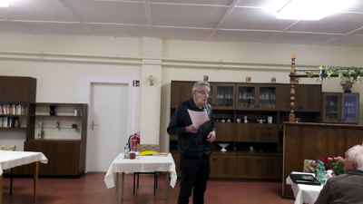 Den Hauptteil der Veranstaltung gestaltete Karl Heinz Schwoch, als Mitglied und als Ortschronist. Er erzählte von seinen Recherchen in Archiven und zu Zeitzeugenbefragungen. Spannend war seine bildliche Darlegung der Dorfgröße vor 1945, wo welche Läden und Kneipen und Werkstätten waren, wer früher und heute diese Häuser und Höfe bewohnt bzw. bewirtschaftet. Zum Schluß präsentierte er uns die 4. Ausgabe