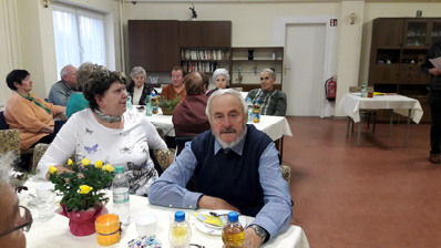 Wir begannen die Novemberveranstaltung der Volkssolidarität wieder mit unserem Geburtstagslied für die im November Geborenen und den anschließenden Blumenglückwünschen von Gudrun Kutzner als Geburtstagsfee für Cäsar am 2.November und für Ursula Tilsner am 28.November. |