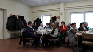 Die Januarveranstaltung der Volkssolidarität nutzte der Vorstand, um seine Mitglieder, die im Januar 1997 geschlossen der Volkssolidarität beigetreten und immer noch dabei sind, auszuzeichnen. Im Beisein des Freienwalder Bürgermeisters Ralf Lehmann und des Altranfter Ortsvorstehers Bernd Hoffmann zeichnete die Seelower VS-Koordonatorin Frau Möckel 13 Frauen und Männer mit einer Urkunde für 20jährige Mitgliedschaft aus. Dazu überreichte Inge Mittelstädt eine Nelke und Bärbel Beßler sowie Gudrun Kutzner im Wechsel eine persönliche Tasse mit Vornamenaufdruck, VS - Zeichen, Altranfter Kirche und Kaffeetasse mit Notenschlüssel. Die Eisenhüttenstädter Koordinatorin Frau Schatz, die in einem Jahr die Arbeit von Frau Möckel mitmachen wird, stellte sich kurz vor und gratulierte der ganzen Gruppe mit einem Wertscheck der Volkssolidarität. |