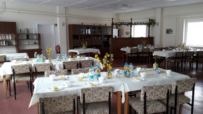 Am 26.04.2017 waren wir das letzte Mal vor der Renovierung des Gemeindezentrums in den uns vertrauten Räumen. Deshalb ein paar Bilder mit dem Mobiliar der letzten 10 Jahre. Die DDR-Schrankwand stammt aus einem privaten Haushalt, ebenso die Bücher, Vasen, Deko - Artikel und ganz viel Geschirr. Die Stühle im Veranstaltungssaal wurden bereits im Kurtheater ausgemustert und zu Günter Ebels Leb- und Wirkzeiten immer wieder repariert. Die Stühle aus dem Sport- und Vereinsraum wurden aus dem Kindergartendomizil mitgebracht und sind noch älter. Die Gardinen und Riesentischdecken wurden von Bärbel Schwoch genäht, ebenso die Fensterverdunkelungsdecken. Die Personen - und Gruppenbilder hängen seit 2010. Nach einer Idee von Renate Melz, die diese Leute fotografierte und rahmte, stellten wir diese ausstellungsartig vor. Wir wollten damit altranftprägende Personen würdigen und ihnen gedenken. |