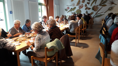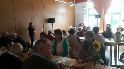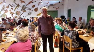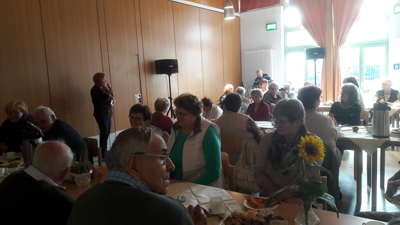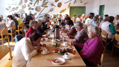 Zur Modenschau in der Stephanus-Stiftung Altranft hatten wir ein volles Haus. Mit 70 Personen haben wir gerechnet und diese angemeldet - es blieb genau ein Platz frei. Bernd Krienitz - zuständig für die beste Musik zu dieser Veranstaltung - brachte 14 Frauen aus Bad Freienwalde mit, die den Stephanus-Treff in der Gesundbrunnenstrasse 10 besuchen. Weiterhin kamen wie jedes Jahr im Herbst acht Volkssolidaritätsschwestern aus Freienwalde und fünf ehemalige Postfrauen zu uns, ebenfalls langjährige Gäste. 42 Frauen und Männer waren unsere treuen Mitglieder oder Freunde der Volkssolidarität Altranft. |