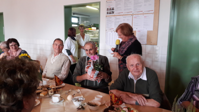 Der Oktober ist in unserer Gruppe der geburtstagsreichste Monat. Inge Mittelstädt, unsere Geburtstagsfee, hatte trotzdem nur eine Blume im Gepäck, weil die meisten Geburtstagskinder an ihrem Ehrentag beglückwünscht wurden. So feierte Gudrun Kutzner ihren 60.Geburtstag am Tag der deutschen Einheit und Inge Horst einen Tag später den 79.Geburtstag. Bärbel Beßler beging am 13.Oktober ihren 65.Geburtstag und Bärbel Jänsch am 19.Oktober den 70.Geburtstag. Unser ältestes Mitglied Willi Langner wurde am 20.10. bei guter Gesundheit 92 Jahre alt und seine Frau Hedwig am 23.Oktober 87 Jahre. Beide wurden jeweils an ihrem Geburtstag von Hilde Ebel, Bärbel Schwoch und Irene Rohr besucht und gefeiert. Joachim Buß, der am Sonntag, dem 22.Oktober Geburtstag hatte, kam zur Modenschau und konnte hier seine Geburtstagsblume in Empfang nehmen. Ein 70köpfiger Chor mit Bernd Krienitz an der Spitze sang das Geburtstagslied für unsere Jubilare. |