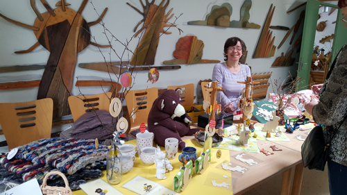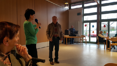 Ebenso wie im letzten Jahr hat sich Ines Herzberg, Mitarbeiterin der Stephanus-Werkstätten, kurzfristig mächtig ins Zeug gelegt und österliche Produkte aus allen Werkstätten zusammen geholt, um sie auf Wunsch unserer gehandicapten Mitglieder in einem Basar im Foyer der Stephanus-Stiftung zu präsentieren. Die Immobilität Einiger lässt Einkaufen ohne Katalog nicht mehr zu. So konnte die Eine oder der Andere noch ein paar Osterüberraschungen erwerben. Von dem Angebot ließen sich selbst Mitarbeiterinnen der Stephanus-Stiftung anlocken. Der Spaß und die Freude sind stets auf beiden Seiten, sowohl beim Verkauf als auch beim Stöbern und Staunen und beim Kaufen. |