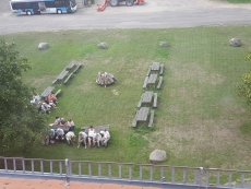 Der Boden 3 beherbergt eine Dauerausstellung zum Speicherbau und - umbau mit Lageplänen, alles über Getreide und Mühlen, zum Bäckerhandwerk, zum Brotgetreide und zur Orts-und Regionalgeschichte. Unter dem Dach, auf dem Boden 4,kann man in die Geschichte der Rundfunkempfänger von 1924 bis 1975 eintauchen und somit ein Stück eigener Geschichte wieder erleben. Nicht alle waren so gut zu Fuß, um die Treppen zu den Böden zu bewältigen. Dafür gab es draußen auf der Terrasse genügend Möglichkeiten vor der Kulisse eines Windparks mit Pferden auf der Weide, die Landschaft zu genießen. Andere setzten sich auf der Wirtschaftshofseite unter schattenspendende Bäume, um zu erzählen, um Lebensgeschichten auszutauschen. |