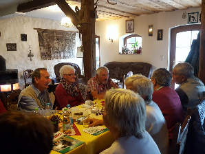 Karl Heinz Schwoch - unser fleißig recherchierender und unermüdlich schreibender Ortschronist brachte die frisch gedruckten Exemplare über den Dorfanger mit. Anne Papendorf bekam auch einige Hefte geschenkt, so dass sie auch darüber Eindrücke unserer VS - Arbeit sammeln kann. Sie war sichtlich angetan von der ehrenamtlichen Tätigkeit Karl Heinz Schwochs, weil es nur wenige schreibende Menschen in der Volkssolidarität gibt. Aber auch unsere Leute haben sich gleich in das neueste Heft, wie Gisela und Karin vertieft, weil es mit alten und neuen Bildern einem zeitreisendem Dorfspaziergang gleicht. Anne Papendorf hatte auch das Glück, Klaus Schluchter kennen zu lernen, als Musiker und musizierenden Wanderleiter. Eine gegenseitige Befruchtung von VS-Wandertag und "Naturfreunde Oberbarnim" wäre möglich. |