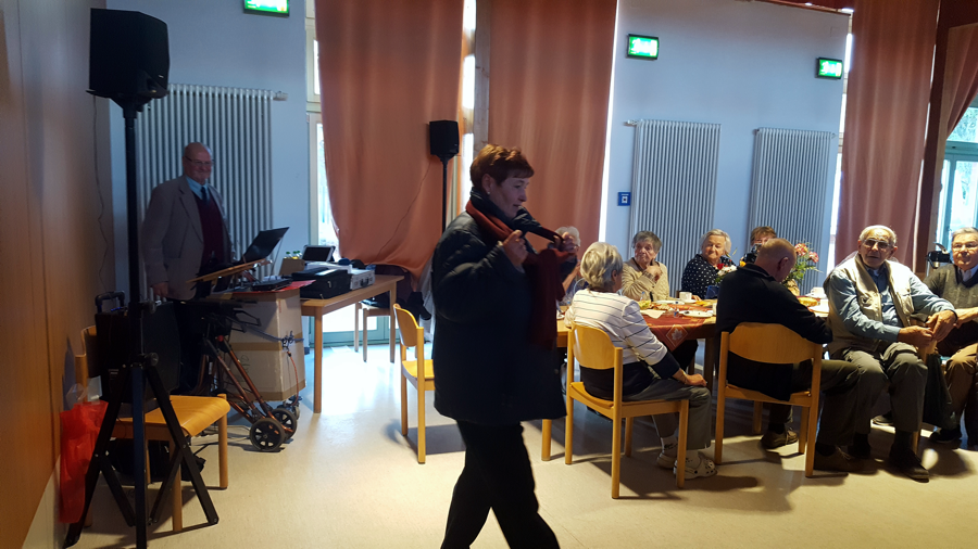 Nach einem halben Jahr jackenloser Zeit gab es einen Tag vor der Modenschau Regen und Abkühlung. Somit konnten unsere Models Lust auf warme Jacken und Pullover machen. Fünf Frauen und zwei Männer probten dafür vor der Veranstaltung, was den 41 Frauen und Männern im Saal gefallen könnte. Bernd Krienitz machte dazu die passende Musik zu den Vorführungen, zum Kaffeetrinken und zur Unterhaltung. |