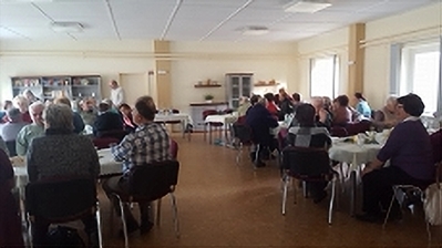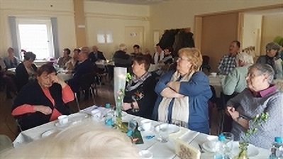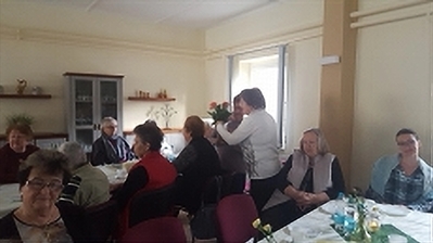 Sieben Wochen vergingen seit unserer Weihnachtsfeier, dem letzten Höhe-und Treffpunkt des Jahres 2018. Dadurch gab es zu Beginn der ersten VS - Veranstaltung einen Geburtstagsnachschlag für die Dezembergeborenen Christina Schelpeper (69), Christa Grützner (66), Rita Liebke (65) und Claudia Frommann (62). Im Januar konnten Klaus Schluchter (70) und Hilde Dahme (81) ihre Glückwünsche und Blumen entgegen nehmen. 48 Interessierte Mitglieder und Gäste, die zu dieser Veranstaltung kamen, sowie die beiden Bürgermeister sangen ihnen allen unser Geburtstagslied. Außerdem zierte der große Tisch im Vorraum des Gemeindezentrums das Restwerk unserer kreativen Frauen. Was auf den Weihnachtsmärkten nicht verkauft wurde, konnte hier im Warmen begutachtet und gekauft werden. Fast alle wurden fündig. |