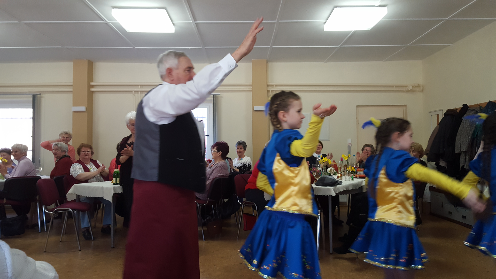 Bernd Krienitz führte mit Mikrofon durch das Programm und unser Cäsar, stilecht mit Kellnerschürze, ließ sich eines geben, um gekonnt ein Loblied mit Sprüchen auf seine und alle Frauen zu "singen". Nach der Stärkung am Kuchenbuffet wurden die ca 50 Frauen vom Altreetzer Karnevalsclub unterhalten. Das heißt die jüngsten Mitglieder der Truppe " die Zappelfüße" tanzten in herrlicher Verkleidung durch das Programm. Sie wurden durch Mitklatschen von den begeisterten Frauen unterstützt, die wie Cheerleader fungierten. Den Abgang ließ Cäsar wiederholen, weil er als Letzter die Kinder hinausbegleiten wollte. |
