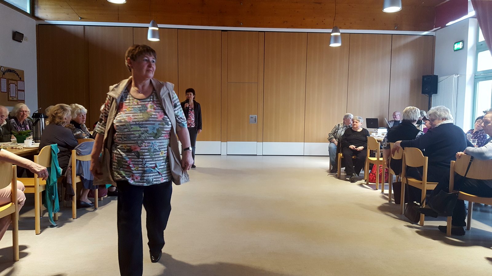 Die Frühjahrsmodenschau incl. Frühlingsfest war an diesem unbesonnten und entgegen der Wettervorhersage trockenem Tag gekennzeichnet von vielen geplanten und plötzlichen Krankmeldungen. So fehlte unsere Geburtstagsfee Inge Mittelstädt in dieser Funktion und als Model. Ebenso ihre Stellvertreterin und Model Bärbel Schwoch. Durch den Umbau des VS-Vorstandes übernahm Gudrun Kutzner an diesem Tag die Begrüßung und Isa David sprang für die beiden Geburtstagsfeen ein. |