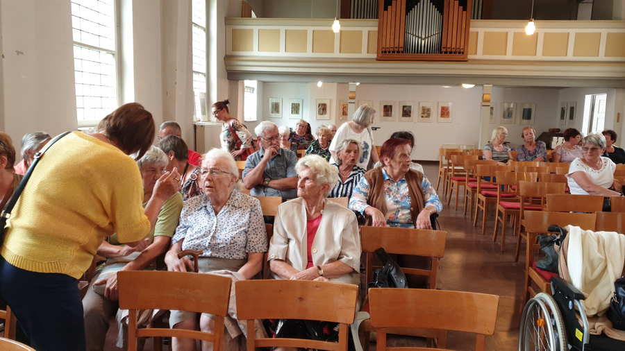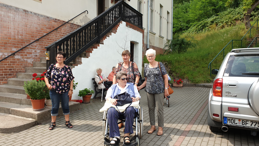 Mit dem Ausflug in die Malche haben wir sichtlich einen Nerv getroffen. Alle kennen diesen Ort und die Einrichtung der evangelischen Kirche vom Vorbeifahren und vom Hören - Sagen. Der Großteil der 44 Frauen und Männer waren noch nicht dort und deshalb sehr gespannt auf das, was sie zu Sehen und zu Hören bekommen. Selbst die Anfahrt war von Ehrfurcht begleitet, weil von außen das Gelände eng und schlecht befahrbar erscheint. Gudrun Kutzner und Anneliese Fritze haben dem vorgebeugt und stellten sich als Einweiser an die beiden Einfahrten, um die Autofahrer auf den Parkplatz zu weisen. So gut vorbereitet, trafen alle von beiden Seiten an der Kirche zusammen. |