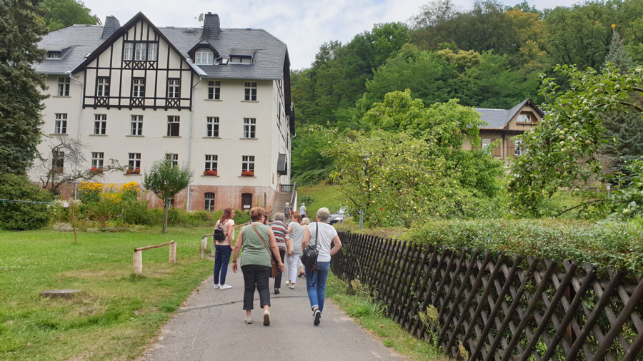 In der Kirche, die zu Beginn des 1898 errichteten Areals als Scheune diente durch die landwirtschaftliche Nutzung zwecks Selbstversorgung, empfing uns Gundula Eichler, die selbst vor 30 Jahren in der Malche ihre Ausbildung erhielt. Die Missionsschwestern wurden nach der Ausbildung in der ganzen Welt in den Dienst der evangelischen Kirche gestellt, um für Kinder, Jugendliche und Familien da zu sein. Sie erzählte uns in dieser zur Kirche umgebauten Scheune zum Beispiel auch, dass die Brunnenbauer anfangs kein Wasser gefunden haben und die Bewirtschaftung beinahe daran gescheitert wäre. Die Schwestern gaben sich mit dieser Aussage nicht zufrieden und beteten gemeinsam so intensiv um Wasser, bis dieses aus einer Quelle floß. Nach über 100 Jahren Schwesternausbildung ging dieses Kapitel zu Ende. Jetzt genießen die Ehemaligen ihren Lebensabend in der Malche inclusive dem neuen Angebot der Einrichtung. Seit 2013 wird es als Gäste - und Tagungshaus genutzt und ist für alle Menschen geöffnet. Hier finden Seminare, Hochzeiten, Klassentreffen, Familienfeiern oder auch ein Volkssolidaritätsnachmittag statt. Es gibt ein spirituelles Jahresprogramm und den Kirchenkultursommer. Die Kirche ist am öffentlichen Wanderweg zum Bismarckturm jeden Tag von 8 bis 18Uhr geöffnet, zur stillen Einkehr oder zum Anschauen der wechselnden Ausstellungen, z. Z. Werke von Marc Chagall. |