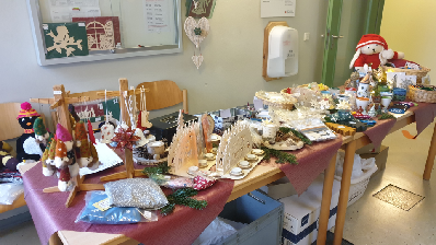 Für das Weihnachtsliedersingen wurden die ersten Textvorlagen hervorgeholt. Bernd Krienitz nutzte die Gunst der Stunde und sang mit dem ganzen Saal weiter Weihnachtslieder, das ganze Programm der vorbereiteten Texte. Die Stimmung wurde mit jedem Lied weihnachtlicher. Draußen im Foyer stand I. H. mit einem Basar an ausgewählten Stephanus-Werkstattprodukten, die wir für uns selbst oder für eine Weihnachtsüberraschung erwerben konnten. |