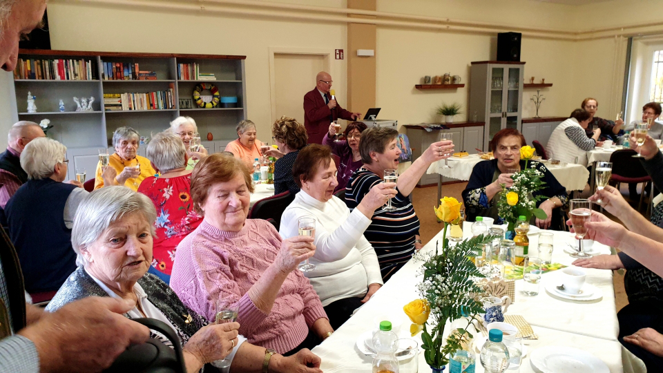 Der nächste Höhepunkt war die schon zur Tradition gewordene Tombola. Diese hat Gisela Zwolinski vorbereitet, gemeinsam mit den Stricklieseln die Präsente zusammengestellt, eingetütet, Lose beschriftet und diese dann während der Frauentagsfeier für einen Euro an die Frau bzw den Mann verkauft. Im Wechsel nahmen die fünf Männer das Mikrofon in die Hand, um die Tütennummern aufzurufen und zu der jeweiligen Gewinnerin an den Platz zu bringen. Es war wieder köstlich zu sehen, wie wichtig so eine Überraschung für Jede ist, obwohl der Hausvorrat an Deko-Sachen, Sammeltassen, Eierbechern sowie Modeschmuck zur Genüge vorhanden ist. So eine Tombola bringt Freude wie an Weihnachten und Ostern zusammen und jede Frau nahm ihre Tüte wie einen Hauptgewinn mit nach Hause.