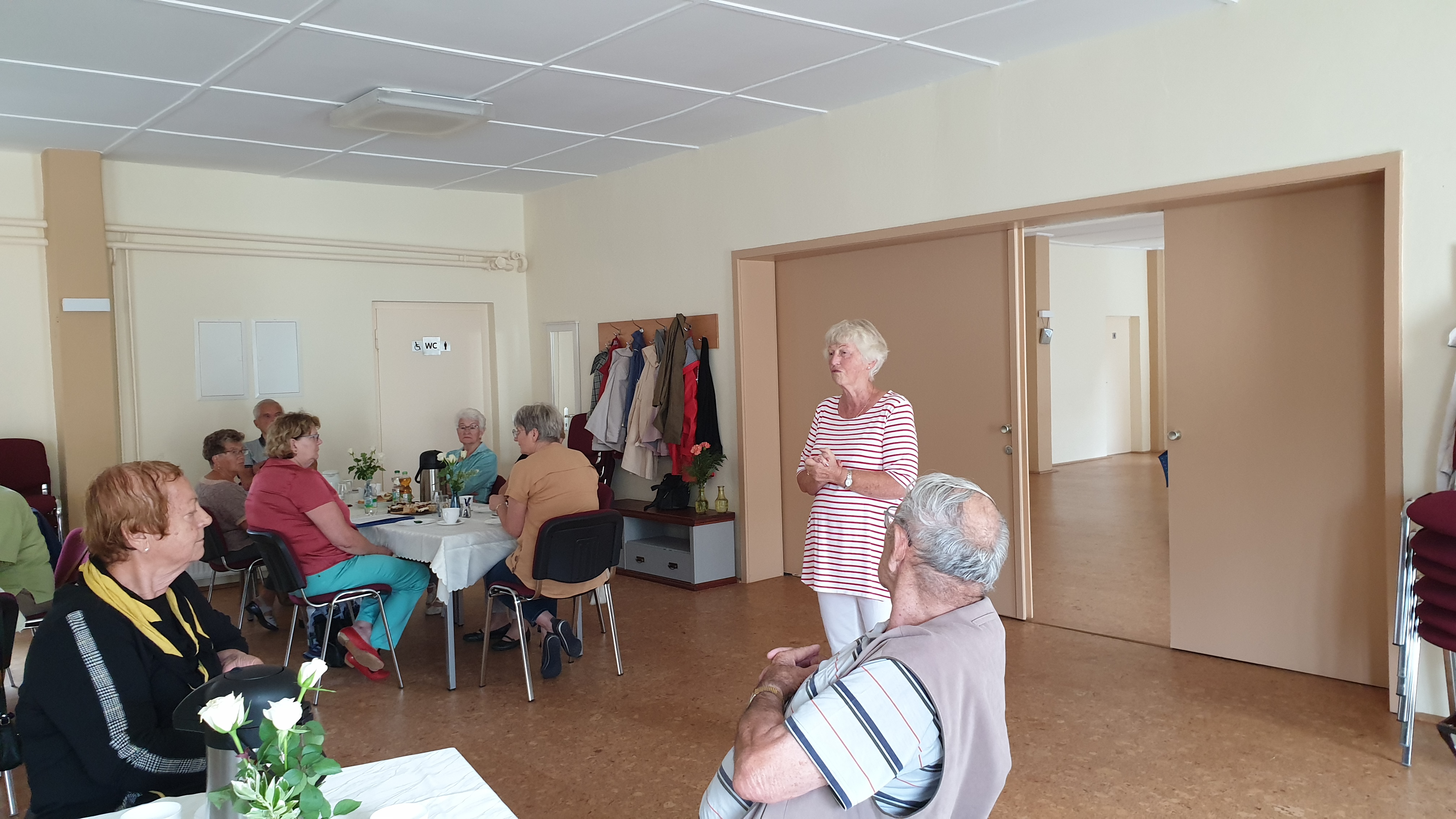 Weiterhin wurden von Erika Batze, die ins Pflegeheim Bethesda umgezogen ist, Grüße durch Petra Gellert übermittelt. Willi Gebhardt ließ ebenfalls Grüße von seiner in der Reha umsorgten Frau Elisabeth und von ihm an alle Anwesenden ausrichten. Christina Schelpeper, die regelmäßig Rosi Köpke im Pflegeheim Buckow besucht, ließ ebenso herzlich grüßen.