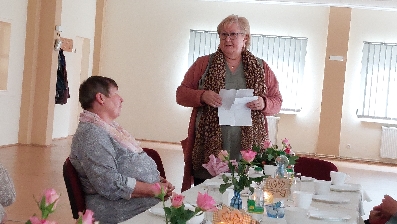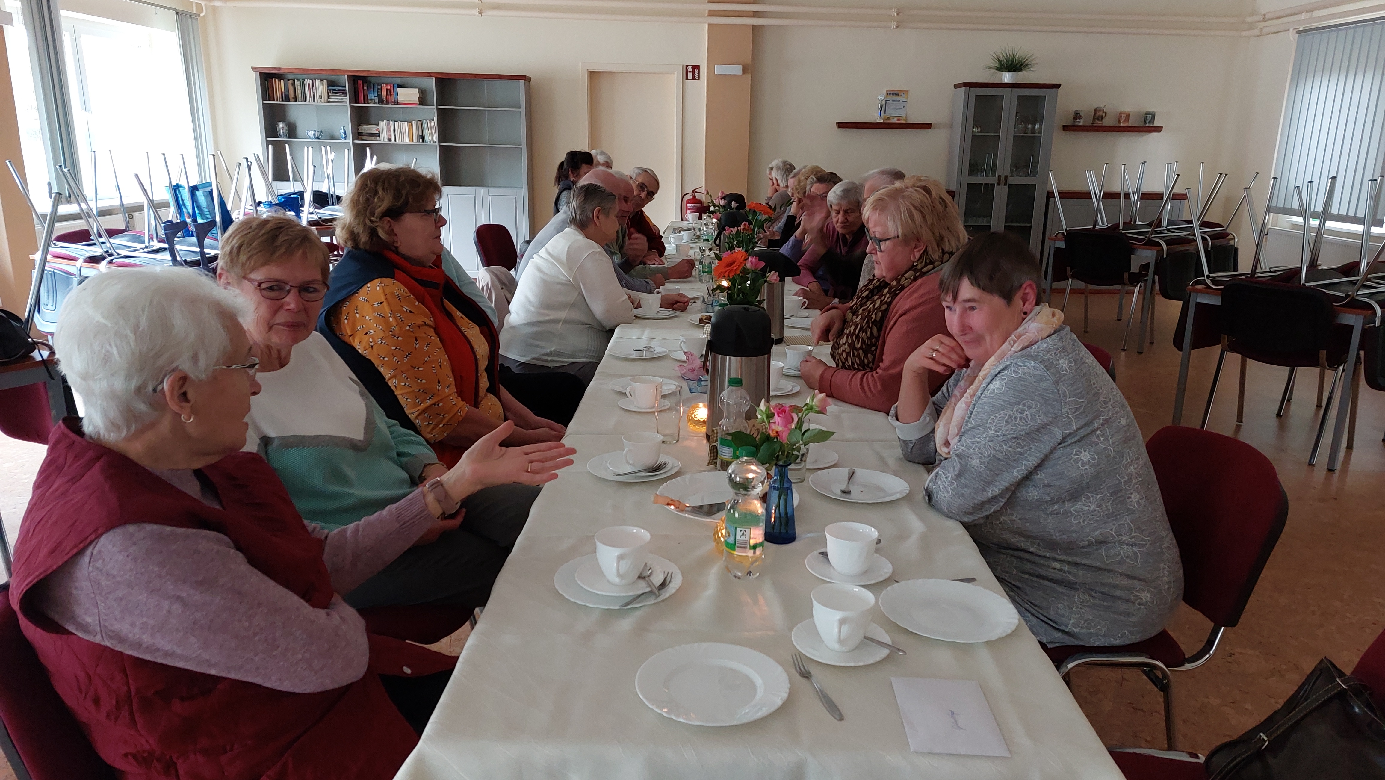Nichtsdestotrotz waren wir uns einig, dass wir uns selbst am heutigen Tag als Gesprächspartner genügen. Claudia Frommann begrüßte alle Anwesenden und übernahm auch den Part der Geburtstagsfee, weil diese im Urlaub war. In Abwesenheit erhielten Rosi Schluchter und Inge Horst ihren Geburtstagsgruß und ihre Blumen bereits zu Hause. Eine persönliche Gratulation durch herzliche Worte und Gesten sowie ihre Blumen bekamen Gudrun Kutzner, Bärbel Beßler, Bärbel Jänsch und Joachim Buß. Nach dem gemeinsamen Geburtstagslied erfreuten wir uns der schönen Kaffeetafel die von Bärbel Beßler, Christa Grützner, Rita Liebke und Karin Kleemann wieder liebevoll vorbereitet wurde. |