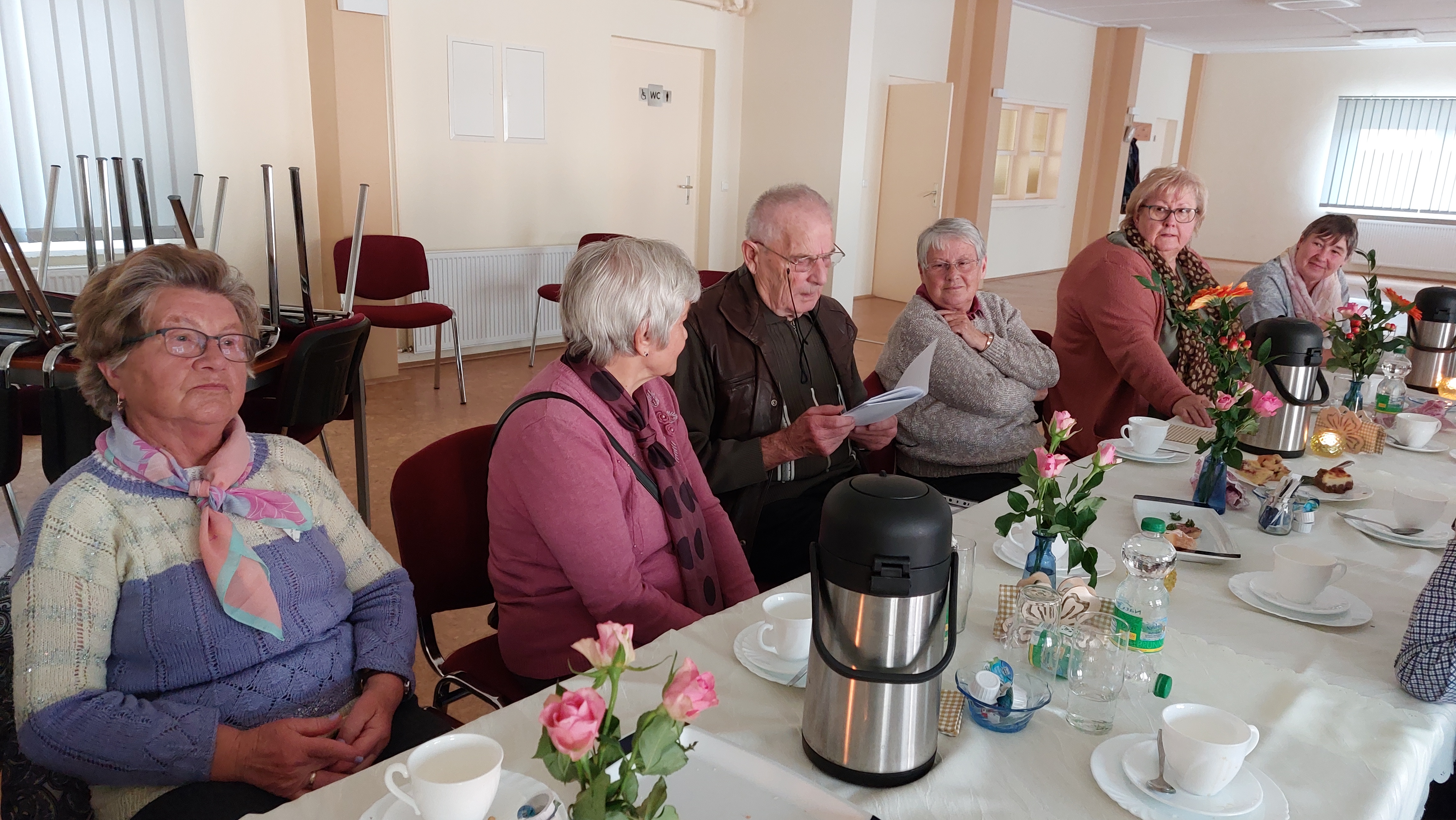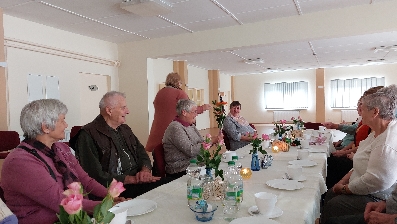 Am 26.Oktober trafen sich 22 Frauen und Männer im Gemeindezentrum, um einen schönen Herbstnachmittag zu verleben. Auf dem Plan stand als Gastredner Christian Büchel, stellvertretender Pflegedienstleiter bei Stephanus Mobil Bad Freienwalde. Diese Einrichtung bietet Beratung und Hilfe zum Thema Pflege an. Wir wollten Fragen zu Leistungen der Pflegeversicherung stellen, aber Antworten bekamen wir an diesem Tag nicht. Es gab ein Kommunikationsproblem beiderseits. Er hatte sich den Mittwoch im Kalender eingetragen, wir saßen aber bereits am Dienstag für ein Gespräch bereit. Nach einem kurzen Telefonat konnte er uns nur anbieten, einen Monat später zu kommen. Da im November ein Spielenachmittag angesetzt ist, stimmten wir kurzerhand ab, ob wir lieber unsere Fragen beantwortet haben wollen oder lieber spielen möchten. Die Mehrheit war für Christian Büchel beim nächsten Treffen. |